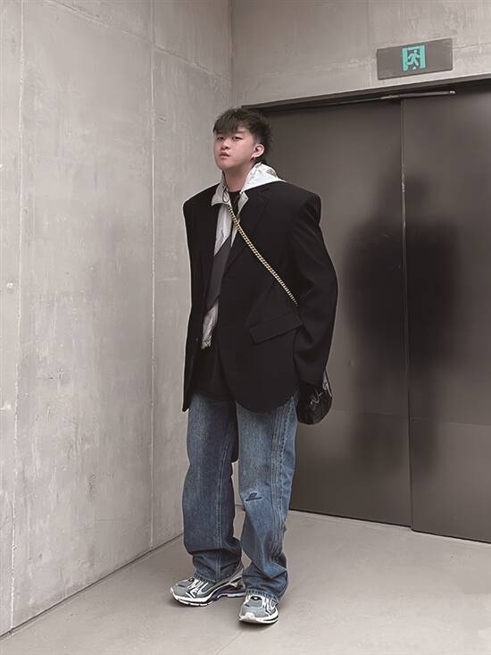 西装向来走斯文老派路线,但好多后生仔惊自己唔够绅士hold唔住。Oversized嘅西装可以运用“三文治模版”嚟搭配,打底同西装同色,中间用“无彩色系”做过渡,有层次得嚟唔会太花咈;如果想活力啲,沉色老西就要搭亮眼少少嘅衬衫,有啲条纹图案都几唔错噶。冇人规定西装一定要衬西裤嘅,试下衬翻同内搭一样色系嘅工装裤,成个造型即时醒神晒啰;穿牛仔裤就更加休闲,老爹鞋、板鞋随意搭,拍拖开趴会兄弟,咩场合都啱key。老味西装撞一撞,即刻新鲜感满泻。
