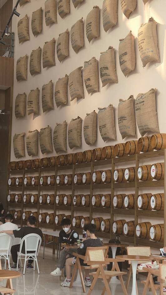 饮过“中式咖啡”,就唔可以错过“番鬼凉茶”——咖啡啦。据闻中国第一家咖啡馆就诞生于广州十三行,依家咖啡店已经走进广州的大街小巷。一行入FOODJOY咖啡源咖啡博物馆,我哋就被浓浓咖啡香包围。博物馆全玻璃外墙嘅设计,装咖啡豆嘅麻包袋,一包包咁排列在墙上,当大片阳光洒下,这里就成为最吸睛嘅打卡位,随意一摆都可以轻松出片!喺呢家占地2000平方呢嘅博物馆里面,我哋可以了解咖啡豆从种植、采摘、烘焙到冲泡的全过程,品味到唔同咖啡豆散发嘅独特香气,唔使等大型专业的咖啡展,就可以见到唔少大型嘅咖啡烘焙设备。与志同道合的咖啡友学杯测、拉花、冲煮,或者等专业嘅咖啡师帮你特调一杯靓啡,都係你见证每粒咖啡豆焕发新生命嘅过程。