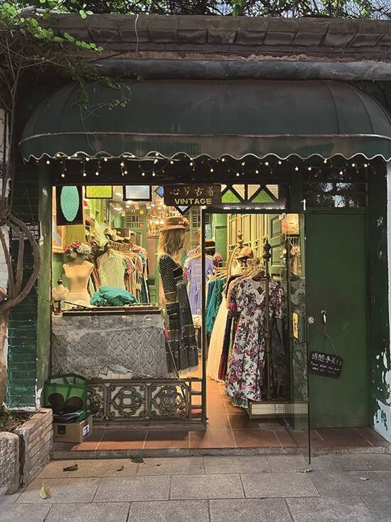 从热闹嘅多宝路转入宁静昌华横街,喺西关旧民居中开启一趟充满烟火气嘅Window shop之旅。透过橱窗你会见到华丽嘅欧式连衣裙、精致嘅中式旗袍, 推门入去“心梦古着Vintage”店,就好似进入民国千金嘅衣帽间,让人迫不及待想将呢啲靓裙着上身,然后提起裙摆喺复古音乐中起舞。店主係一位古董礼服收藏者,她说自己拥有两千多条古董裙,天鹅绒、真丝等材质为主,虽然都係上世纪20到90年代嘅style,但仲保持住光亮嘅色泽与丝滑嘅手感。店主同时也是一位服装设计师,所以店里还有她自己设计的旗袍和礼服裙。