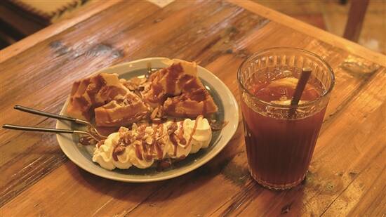 睇完靓衫,我哋去对面嘅“西关84”饮翻杯咖啡,西关独栋小洋楼古色古香,同古董裙就最衬啦。换上风情万种嘅复古礼裙,以透住暖光嘅西关大屋为背景,影一套温馨又惬意嘅民国小姐大片。传统中式横批窗,西关屏风门窗、屏风、枱面,仲有各种形状嘅彩色玻璃,同有残破感嘅红砖墙相互呼应,咖啡店从外到内都充满西关屋的韵味。而日常静谧嘅环境,简直就係“i人”乐园,揾一个角落坐低,点一份美味嘅下午茶,自成一个小空间。除咗香浓而不腻嘅咖啡,呢度仲係“华夫控”嘅天堂,软糯嘅华夫饼配上各种口味嘅淋酱、雪糕、果干后,美味再升呢,让整间老屋充满香甜风味。