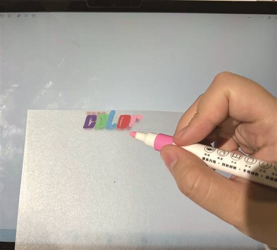 2.提前喺草稿纸上画好轮廓,再用彩色马克笔在磨砂的一面描边上色。