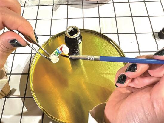 6.待指环冷却,再用UV胶封层、用烤灯照120秒,靓靓嘅戒指就完成了。