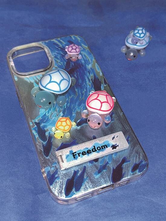 乌龟手机壳:乌龟有大有细,如果係足够大嘅乌龟,可以贴上手机支架,帮你揸实手机不易甩;细乌龟更容易摆阵,用滴胶粘在手机壳上,摆成你钟意嘅“阵法”,举起手机时你就係最抢眼嘅仔。