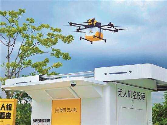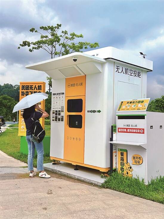 去公园野餐、露营成为很多人周末hea时间嘅新方式。早早备好嘅干粮零食,总要配上一杯清凉饮料,如果再嚟啲精美点心就更完美啦。喺广州市儿童公园、广州云溪植物园、深圳北站中心公园、深圳人才公园等多个公园景点,出现咗无人机外卖服务,只要係你想食嘅汉堡、便当,想饮得奶茶、咖啡,都可以好似平时点外卖咁,用手机轻松落单,无人机“外卖员”会精准将餐点送达指定位置,客人扫码取餐后就可以尽享美味啦。无人机“外卖员”能更快更准确咁投递美味,令客人及时收获最新鲜美食,更能收获游玩时嘅好心情。每次未来感十足嘅无人外卖机现身,都会成功吸引大小朋友嘅目光,扇叶旋起嘅嗡嗡声响,大家就知道,又有一份美味即将空投到客人手上。