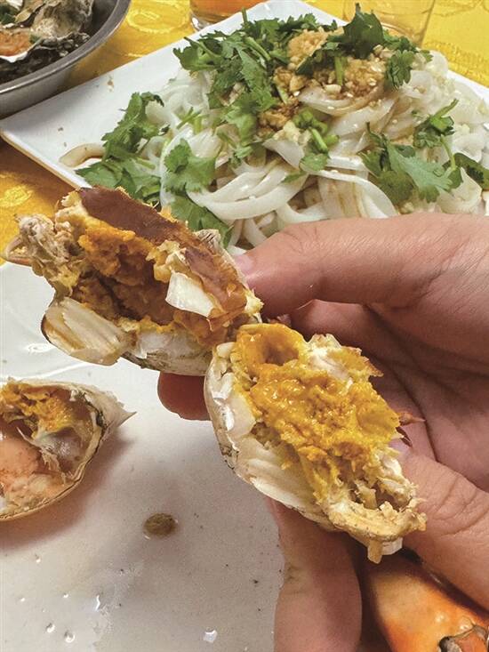 南海海域伏季休渔期结束后,台山嘅海鲜开启“味”力无限模式。秋风起蟹儿肥,又到食蟹好时节。台山奄仔蟹虽然冇大闸蟹咁多肉,冇膏蟹咁多膏,但佢胜在够嫩口,有肉又有膏,肉质鲜甜,蟹膏柔软顺口。原只清蒸嘅奄仔蟹,能最大程度保留蟹嘅鲜味,给你一口清甜;盐焗奄仔蟹用高温锁住蟹汁嘅同时,令海盐透过蟹壳渗透至蟹肉,鲜蟹膏多咗一份咸香,蟹肉因为有盐稍微脱水,变得更加紧实,真係别有一番风味。中意重口啲嘅为食猫,要试下姜葱蒜爆炒开边奄仔蟹,蟹嘅鲜味同配料嘅香味好搭,镬气够猛,蟹甜、油香、烟火气全部上齐。肥厚嘅台山蚝都正当季,蒜蓉蒸过后有天然渗出嘅蚝汁,一啖海鲜、一啖鲜汤,令人回味无穷。