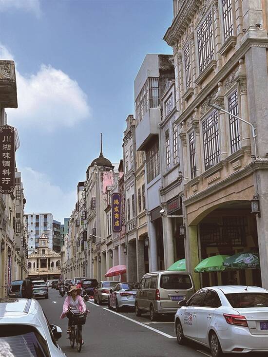 台山历史文化街区,有超过40条连片嘅骑楼街道、过千栋由民国时期保留至今嘅老骑楼。步入呢个街区,仿佛穿越时空,回到过去。片区曾经由归国华侨注资兴建小洋楼,历经数百年嘅风雨,依然保留住当年嘅婀娜多姿。雕花嘅围栏虽然斑驳,但仍然好立体;五彩玻璃封尘,但当年嘅绚烂依然若隐若现;旧时风光嘅大字招牌,同依家经营嘅小型五金店风格完全唔同,但仍可见威水同架势嘅气场。马路上係载货嘅van仔,屋檐下停住送外卖嘅电鸡,係时光喺度继续嘅证明 。有过百年历史嘅东风酒店仲继续营业,门面冇当年咁灯红酒绿了,但呢个片区曾经车水马龙嘅繁华景象,仲有唔少旧街坊记得——坐喺路边乘凉嘅老人会同你打招呼,闲话间仲会提起。