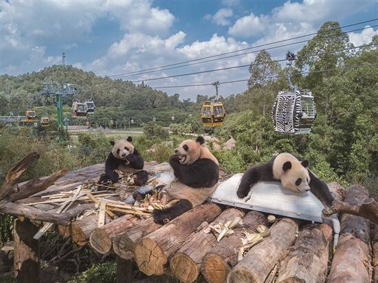 打算喺长隆度假区玩足几日,咁就先住主题酒店!床品、壁纸全是动物元素,打开窗帘,会见到白虎同火烈鸟,提前同动物来个“贴贴”。第二天早起冲野生动物世界,坐上特色小火车穿越 “非洲草原”“亚洲森林”,近距离看长颈鹿优雅啃树叶、斑马群散步,还有犀牛、羚羊的日常。“国宝” 熊猫三胞胎 “萌帅酷”, 必须打卡!睇佢哋啃竹叶、玩波波,冧到爆!旁边的熊猫餐厅,有做成熊猫样嘅饭团,同“国宝”面对面食饭,感觉好盏鬼。近嘅睇完,出发坐空中缆车,从高空俯瞰整个动物王国,视角超绝!