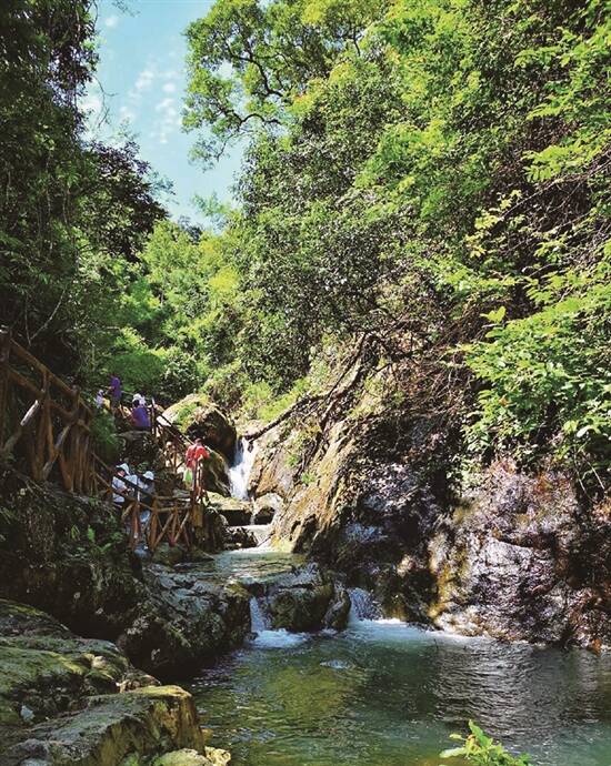 开车直奔流溪河森林公园三桠塘幽谷景区,花40元买张“幽谷探险”嘅入场券啦!2500米的溯溪步道贯穿山谷,啱入门口就听到三桠塘瀑布从10米高落下嘅轰鸣,站在瀑布下,轻松get个武侠风姿。行入飞瀑溪潭,可以溯溪玩水,踩着浸润嘅石阶继续探寻山谷。呢段溯溪路惊险又刺激,走飞流仙桥,脚下就係10米深嘅峡谷;钻天岩洞,一出洞口就是悬崖。穿过葱葱郁郁的幽谷,就到了泼水广场,选择唔同分岔口会遇见唔同景色。沿步道向上行,三桠塘水库似“果冻海”,海拔870m嘅月牙湖就像块绿宝石。如果转向大路,去山边嘅观景台俯瞰流溪湖,岛屿翠绿如棋盘散落的棋子,“高峡出平湖”的磅礴诗意扑面而来。