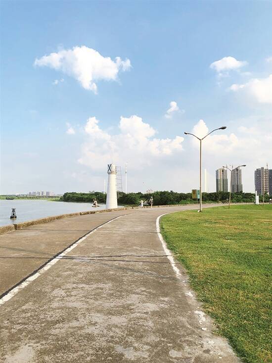 去到灯塔下面可以借灯塔的墙面和堤坝做景 |