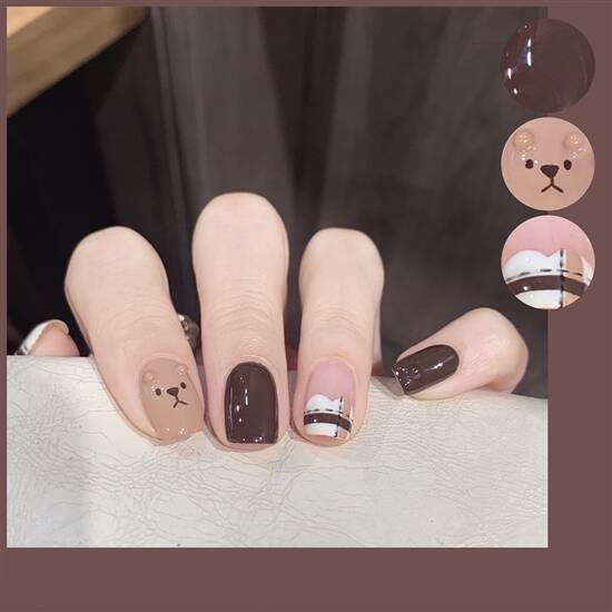 奶棕色与可爱小熊款式,短甲亦好睇 |