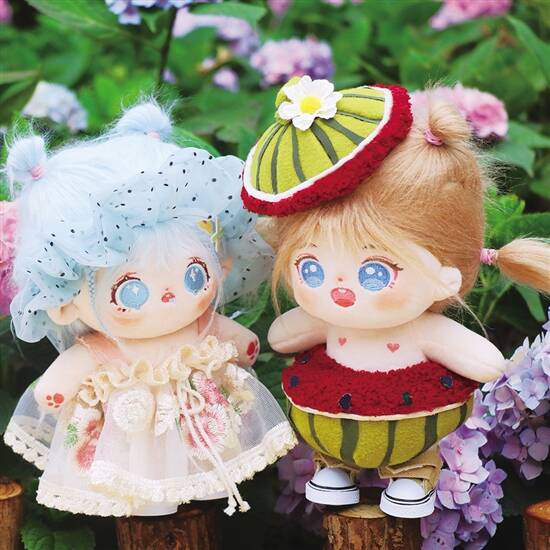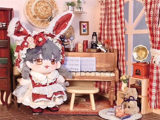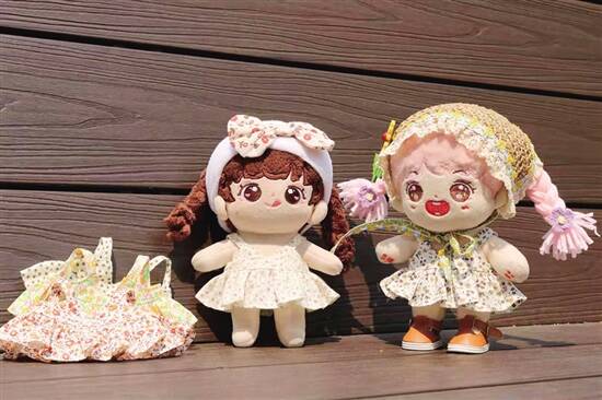 在“养成系偶像”流行下的饭圈,大家开始“养”起了以偶像为原型的棉花娃娃。她们不满足于只养娃,还会帮其设计制作各种衣服,并带出去聚会、拍照,逐渐建立起一个新的独立文化圈层:“娃圈”。自称为“娃太”们的娃衣手作人,凭借自己的一双巧手,帮娃娃们穿上了各种款式的衣服,来一起走入“娃太”的世界吧。 冯丽欣/文 受访者提供图 饭圈入坑,童心满满 “娃太”@一颗栗子(后文称栗子)入坑的第一个棉花娃娃是自己一直在追的偶像,由于娃娃融入了偶像特征,看起来更像是可爱的Q版偶像,她也开始慢慢认识到这些可爱的类人型娃娃。栗子在购入了第一个娃娃后,便开始了“养娃之路”,帮娃娃购置各种衣服、服饰配件。对于她们来说,棉花娃娃就像自己的“崽崽”,每天都会随身带着。她们还形成了自己的圈子,逐渐加入网络社群,认识更多有相同爱好的人。她们会相约出去进行娃娃聚会、帮娃娃拍各种写真。“入坑”5年,拥有100多只棉花娃娃的“娃太”娅娅说:“只要出门就会带上自己的崽,帮它拍照是我最大的乐趣”。 亲自设计衣服的乐趣 “养娃”的大多是学生群体,需要付出的金钱和时间都不少,对于课余时间制作衣服的“娃太”来说,帮娃娃制作衣服多是源于自己的兴趣爱好。拥有自己娃衣店铺@溜鹅小分队 的娅娅,是一名服装设计专业的学生。从高中时期就开始玩娃娃的她,疫情期间呆在家里没事做,便决定运用自己的专业知识,亲自为心爱的娃娃设计并制作衣服。设计一套专属于娃娃的衣服,对于娅娅来说是一件很有成就感的事。从中能使她获得在学校获取不了的实战经验,提高自己的动手能力。有了设计灵感后,娅娅会先画出设计原稿,而后便购置面料和配件,最后在家用缝纫机缝制成衣。从去年4月份开始至今,娅娅已经独立设计了55套左右的衣服。 灵感来源日常 新“娃太”@一吨莓果果(下文称“果果”)刚开始做娃衣是源于自己对服装手作的兴趣,果果平时也会给自己的裙子做配饰。拥有了属于自己的棉花娃娃后,果果就开始想要动手去帮它们制作好看的衣服,实现自己一些在服装设计上的脑洞。 果果的设计灵感通常源自她的“观察”,比如这套夏日西瓜套装,就是因为她家狗狗,看到她吃冰西瓜的时候,一直在旁哈热气。她当下就想给狗狗做个解暑西瓜帽,灵光一现,便想到也能给自己的棉花娃娃做个夏日水果套装。她还画了好几套还没有出成衣的设计稿,她坦言:“现在在学做刺绣,想要把娃娃的小裙子做得更精致。” 栗子设计的衣服风格多样化,融合Lolita服饰和汉元素,在哪各种社交平台上,果果刷到各种的有趣食物,都能成她为娃娃设计衣服的灵感来源。