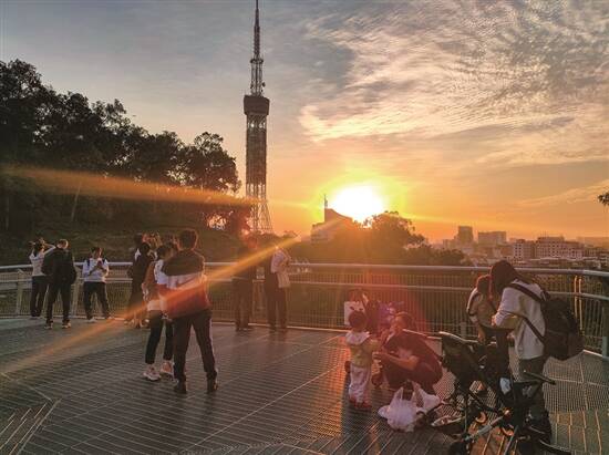 如何给假日添点浪漫?不妨在行程中加上一场和落日的约会吧!在高楼林立的大城市中,广州嘅朋友仔想话要欣赏一场日落靓景,都唔係咁易噶。不过唔使闭翳!现在日短夜长,落日会更早来约, Color已经帮大家探好嗮路,一次过邂逅多款绝美日落。 陈祉伶/文、图 桥上夕阳无限好 定位:猎德大桥、海心桥、人民桥 如果你唔想登高爬山,又想欣赏到完整嘅“咸蛋黄”落下过程,跨江桥可能就係最啱你嘅绝佳观赏点。有一定高度,障碍物较少兼夹视野开阔;自带长度优势,漫步桥上就可以实现“追光自由”。好似广州的著名地标之一,猎德大桥就係睇日落嘅好去处,呢度可以直面广州塔、海心桥等地标建筑,望着这座繁忙都市在太阳余晖下渐渐变得恬静、温柔。如果运气好嘅话,仲可以看到大片火烧云添。 往西走,广州现时最后生嘅跨江桥——海心桥,桥上桥下赏日落都係一绝!傍晚时分从近广州塔嘅入口上桥,桥脚处就可以尽览对岸CBD在夕阳下“熠熠生辉”;跟住太阳落下嘅轨迹继续往西,喺毗邻江水分叉口嘅人民桥,贴心设置嘅观景平台,会吸引好多摄影发烧友带住长枪短炮聚集;到海心沙落桥时,仲可以用超有氛围感嘅晚霞为行程完美收尾。 江心黄昏景绝美 定位:沙面岛、大吉沙岛 除咗跨江桥,广州仲有唔少深藏不露嘅绝美小岛都好适合“追光”噶!有露天欧式建筑博物馆之称嘅沙面岛,落日时信步于充满欧陆风情的沿江走道,可赏金光洒满江面,随着江水的涟漪荡漾;亦可以闲游在极具异域风情的建筑群之间,寻觅那些慢慢淹没于暖黄金红中的角落,感受光影变幻之下的动态美。 靓爆朋友圈嘅大吉沙岛,号称“广州最安宁的角落”,喺一个只能用渡轮靠近嘅秘境:在生鱼洲码头的岸边 落日西坠染红天空和江上渔船,极具质感嘅“渔舟唱晚”美景,绝不会辜负你对佢嘅期望。此外,岛上田园气息浓郁,仲有大片水稻试验田、鸟群栖息的生态湿地、禾下梦雕像等多类打卡点,用一趟轮渡时间即可收获一场逃离喧嚣的快乐旅程! 公园晚霞胜名画 定位:流花湖公园、越秀云道 拥有湖光山色嘅各大公园,亦係爱日落人士喜欢打卡的地点,流花湖公园就係其中的佼佼者。公园内有一座被广州人称为“白宫”的西式建筑,最佳嘅落日观赏点为东北门附近嘅观景平台,以及园内东侧的“凌波径”临湖栈道。从太阳在“白宫”顶上若隐若现开始。当太阳慢慢落下,光芒渐收,在湖水中点亮了一束涌动的火红,建筑和树木倒映水中,时光仿佛静止,湖上落日与“宫殿”定格成至靓景致,犹如晚霞绘制的立体名画,美轮美奂。 另一个Color想推荐嘅地方,係连通越秀公园至飞鹅岭嘅呢一段“越秀云道”, “山融于城”嘅佢贴住山体蜿蜒而去,大部分为悬空栈道,全程可以眺望到环市东电视塔,无论係行走体验定係景观都一流!