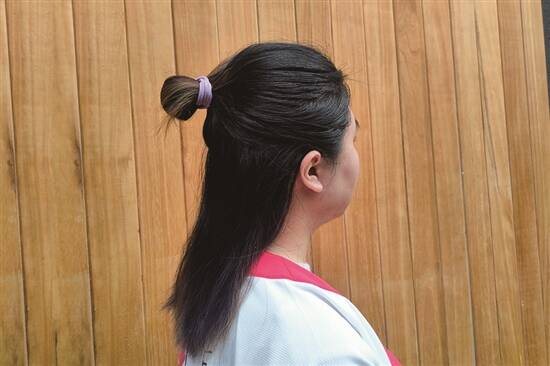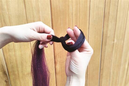 ④绑上假发丝 假发丝打圈绕在真发上,尽量将衔接的发结推近发根。 |