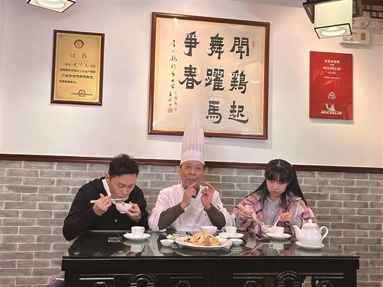 广东人成日讲“无鸡不成宴”,大时大节,餐台上更加唔少得鸡嘅加持。过年前,香港艺人曹永廉就约埋可乐君,去到广州荔湾老西关寻访“文记壹心鸡”传承人,试食地道嘅广式白切鸡,顺便“偷师”学埋呢门手艺,话想翻香港嘅时候露翻两手咁话。又食又“拎”嘅阿廉究竟get到师傅几成功力,即刻去片! 郭玮/文 Color团队/图 靓鸡宴客有讲究 喺广州人嘅餐台上,一道风味独特嘅白切鸡係宴请宾客、喜庆聚会嘅必备菜式,在岭南饮食文化中分量十分重,广式白切鸡制作技艺更已入选咗第八批广州市级非遗代表性项目名录。广式白切鸡讲究嘅就係原汁原味、皮爽肉滑,佢嘅鲜美同嫩滑係无可替代嘅魅力。而“文记壹心鸡”同普通白切鸡最大嘅唔同,就係佢选用秘制白卤水浸鸡,令成品除咗肉嫩皮脆之外,连骨都有味。“文记壹心鸡”传承人冼伟文话,佢哋敢将鸡柳切成“大鹏展翅”状,展示喺碟边,就係因为佢自信呢味鸡肉够嫩够滑,连最容易柴口无味嘅鸡胸肉,都能轻松征服嘴刁嘅广州人。 鸡有鸡味落足料 冼师傅静鸡鸡话俾阿廉知,广式白切鸡一般会选用清远嘅麻鸡,而且只有适当体重嘅“鸡选手”先可以入围成为壹心鸡,太肥美会过于油腻,瘦过标准就怕肉柴。浸鸡嘅白卤水内有乾坤:除咗要准备八角、陈皮、甘草等等常见汤料,仲要用瑶柱提味,而烤过嘅大地鱼就係呢煲卤汁鲜甜嘅秘诀啦。在盛行机械化流水线嘅现代社会,壹心鸡依然坚持全人工制作。从劏鸡嘅水温开始就要严格把控,浸鸡要等汤大滚,三起三落可以令鸡肉受热均匀。当鸡整体浸熟后,就要趁热放入事先冷藏嘅卤水中过冷河,最后浸够二十分钟等佢彻底冷却,冷热交替使鸡皮变得紧致,鸡肉锁汁入味,每一步都不可或缺,更不能马虎。要浸出一只皮金黄不破,肉质紧致饱满嘅鸡,真係少啲心机都唔得。传承人话“一心一意做好每一只鸡”係佢哋嘅店志,浸鸡嘅白卤水已经传承咗廿几年,期间会不断添加卤料keep住佢嘅原香,好多老街坊已经认准呢个味道就係正宗广州味。 传承全靠用心坚持 听到师傅整鸡嘅卤水咁把炮,阿廉梗係心动,想趁机买啲“半成品”翻去,到时喺屋企人面前威下咁啵,但师傅就话,呢煲秘制卤水唔卖嘎!“偷鸡”唔成,阿廉就唯有现场食翻够本啦。师傅真係将“一心一意”嘅宗旨发挥得淋漓尽致,除咗对制作流程嘅坚持,斩鸡也很有技巧,而鸡肉上枱之前仲用卤水淋一次,保证佢最juicy嘅状态,甚至连点鸡嘅姜葱酱的配比都有讲究。师傅仲偷偷话俾我哋知,原来鸡pat pat数上去第三块係最正啵。师傅将各种白切鸡心得铭记于心,同时又大方share出嚟,为嘅就係希望呢碟白切鸡美名远扬,令更多人感受到粤菜文化嘅真香魅力。曹永廉亦感叹道:“广式白切鸡制作技艺能传承至今,经久弥香,全靠师傅的细心和坚持。” Color提示:《UP在湾区·港见粤闻》会继续带大家学非遗、品美食、玩转非遗手艺,如果想知下次轮到边位大咖带大家搞搞新意思,记得关注我哋啦!