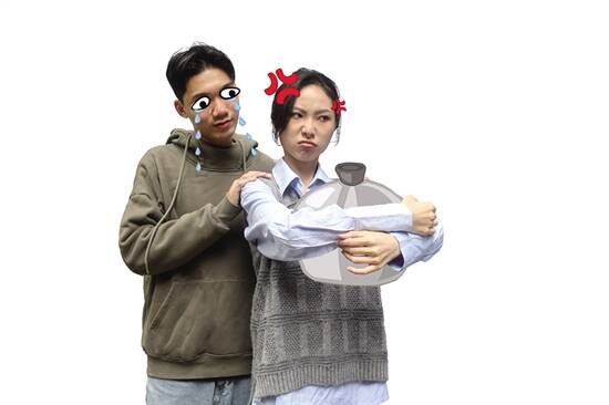 万物复苏的春日,好啱谈情说爱!有冇一个人,让你一见到佢就嗒嗮糖?被人抄牌未必係坏事?情侣分手、复合关个煲乜事?喺粤语入面,拍拖原来咁多花臣,柴米油盐都尽化做浪漫甜蜜,想要脱单嘅同学,快啲嚟学习! 陈祉伶/文、图 钟妲彤、夏钜恒/模特 嗒糖 dab1 tong4 粤语中的“嗒”,可以指用舌尖尝味道时,舌头与上颚接触发声的动作,也可指食嘢时发出嘅咂嘴声。“嗒糖”本意指嘴里含着糖果,后引申为“心里美滋滋”嘅意思,通常用于形容见到心仪对象嗰阵,满心欢喜嗰样好似食咗糖果咁甜蜜。粤语中形容春心萌动,仲有好多盏鬼嘅讲法可以,例如“起痰”“生滋猫入眼”“十月芥菜——起心”等。 造句:佢见亲你都嗒嗮糖咁,肯定係钟意你啦。 抄牌 cao1 pai4 “抄牌”呢个讲法,本意指警察对违章车辆作登记处理时,会用一个纸笔记录下车牌等相关信息。而延伸的含义,就指某人主动向异性要联系方式,因为用纸笔记下对方电话号码嘅动作,同警察抄牌好相似。到咗今时今日,男女抄牌的方式都upgrade咗啦,唔使用纸同笔,打开微信扫码加好友就得啦。 造句:你想识女仔,主动啲去抄个牌先啦,唔係点有“然后”啊? 靓女,可唔可以俾个num我啊? 呷干醋 hab3 gon1 cou3 粤粤语中嘅“呷醋”,一般指男女关系上的忌妒情绪,“呷干醋”则比前者更带诙谐意味,亦有无根据地猜忌的意思。对于呢句俗语嘅出处,如今已经比较难考究到权威的讲法,不过醋嘅酸味,同忌妒情绪产生的酸涩感类似,用起身都几生动形象噶。如今,“呷醋”一词往往不局限于用在两性关系中,亲密的朋友、家人之间都可以用嘅。 造句:对我嚟讲,闺蜜一样好重要,你做男朋友嘅就咪乱咁呷干醋啦! 箍煲 ku1 bou1 在广府人嘅观念中,两个人一旦结合就应该“同捞同煲”。“掟煲”就係指将个煲丢远或打烂,形容夫妻或情侣之间感情破裂,决定分手。旧手艺制作的砂锅容易开裂,一般会用铁线把裂砂锅紧紧地箍扎起来,使裂缝变小,再用蛋清或米饭涂抹裂缝,火烧后即可继续使用。所以大家又用“箍煲”比如夫妻或情侣之间,采取措施修复已有裂痕嘅关系。 造句:道歉都咁冇诚意,想成功箍煲都几难咯。 BB~ 撑台脚 cang3 toi4 gêg3 “撑抬脚”係指两个人、尤指夫妻或恋人亲昵地同台共餐。呢个讲法源于情侣面对面食饭时,双方对脚在台下,都要甜蜜地“依偎”在一起嘅暧昧小动作,係夫妻或情侣秀恩爱嘅经典方式。 到了现在的实际使用中,呢个词也泛指二人用餐,可用于朋友、家人之间,不一定有暧昧的含义。 造句:扮到鬼火咁靓,一落班就急急脚走人,係咪赶住去同人撑台脚啊? 电灯杉挂老鼠箱 din6 deng1 cam3 gua3 lou5 xu2 sêng1 以前嘅电灯柱多数用杉木造,所以会被叫做“电灯杉”,而旧时卫生条件唔多好,为清除鼠害,街道会在电灯杉上挂装有消毒药水嘅“老鼠箱”,用于收集死老鼠,以免造成卫生隐患和疾病传染。“电灯杉挂老鼠箱”呢种当时司空见惯嘅现象,后来被大家用嚟比喻一高一矮嘅情侣。过去,唔少人会觉得高矮悬殊係唔登对,如今,则有好多朋友仔钟意呢种“最萌身高差”。 造句:佢哋两公婆真得意,好似电灯杉挂老鼠箱咁,一高一矮。