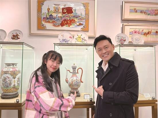 除咗去吃喝玩乐,Color君现在都好留意喺我哋身边嘅非遗之美。从去年开始,我哋每一期可乐报嘅“UP在湾区”栏目,都会带艺人去学非遗、品美食、玩转非遗手艺,亦因此同艺人们有更深入嘅交流。今次就会同“廉哥”曹永廉佢挑战一下广彩技艺,先试下喺瓷碟上画画! 郭玮/文 叶思玲/图 广彩有段古 广彩即广州织金彩瓷,指广州地区烧制的织金及其采用的低温釉上彩装饰技法。广彩以色彩绚丽、构图严谨、绘工精细为最大特色,喺清代康熙乾隆年间繁荣发展。广彩图案一般以传统花鸟瓜果为基础,并仿照织锦图案,以金色作“锦地”,行话称之为“织金”,多为线描与平涂相结合,因为花纹布满器体,所以以其“绚彩华丽,金碧辉煌”而闻名于世。广彩技艺既係传承传统工艺制作手法的彩绘艺术,又係一种吸收咗欧美艺术精华的创意工艺品,係中西文化交流的结晶,至今已经有三百几年的历史。 细节考眼力 咪以为广彩就係喺个瓷碟上面画下水彩画啊,要完成一个广彩作品,都需要经过繁琐嘅工序,一啲都唔可以马虎噶!首先就係要选定作品嘅基础白胚,喺白胚上按照主题设计的主画面,用陶瓷颜料进行“写瓷黑”,即用黑色颜料素描出主画面的线条;再通过色彩的填充、调色、洗染等等步骤,最后放入锅炉烧制。廉哥拣咗广州地标“小蛮腰”嚟填色,而可乐君就睇啱咗充满羊城风味嘅五羊雕像。一开始以为just填色好容易嘅我哋,真係太天真了。原来上色的颜料会水料分离,需要用画笔蘸取再调和,点多咗水会太稀、颜料就容易流到出界,但太干又唔容易着色。瓷碟上的线画好多细节,有啲微细嘅地方真係好考眼力。通过我哋嘅努力,成品确实令人惊艳,不过最终成色都仲係要通过烧制先会显现,令大家十分期待! 融入新元素 广彩係广州传统嘅非遗手艺,周师傅作为新一代嘅非遗手艺传承人,都希望可以有多啲年轻人投身到非遗技艺嘅学习中。随着时代嘅发展,传统嘅广彩都融入了潮流、科技元素,例如依家除咗用比较传统的图案,师傅都尝试用一啲潮人喜欢嘅图案嚟做作品;制作过程中,亦会通过电脑技术绘画,令细节更精致。正因为有呢啲新时代色彩嘅融入,广彩已经从单纯嘅艺术品渐渐融入到大家嘅日常生活与工作中,吸引更多年轻人的关注,让非遗技艺焕发出新的生命力。