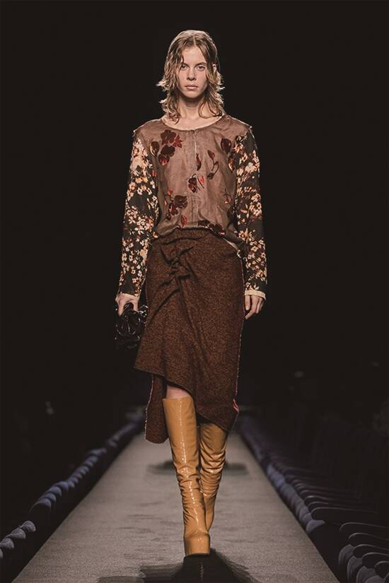 夏天多巴胺,秋天美拉德,潮流色彩跟住季节变!“美拉德”一词源于化学概念中的“美拉德反应(Maillardreaction)”,牛扒、可颂等食物被炙烤后产生褐变反应。今年,“美拉德”成为秋冬季嘅流行色彩热词,为经典嘅棕褐色系穿搭,增添一丝焦色和香气,时尚感翻倍! 黄译萱/文 品牌官网/图 贵气出圈 一件色彩浓郁嘅外套唔单止遮风保暖,仲可以帮你提升气场,美拉德色系同充满桂花香的秋色配搭,更显贵气。文咏珊呢件Max Mara皮草外套,内搭同色系气质裙装,华贵又有女人味,简直係贵妇向晚装嘅不二之选。另外,动物纹皮草亦係潮人心头好,Stella McCartney 长款动物纹皮草搭配棕褐色内搭,仲玩出跳色嘅慵懒感。秋冬一定唔少得大气又保暖嘅大褛,Dries Van Noten 2023秋冬系列中,有一款腰间涂咗“金漆”嘅大褛,搭配同色系嘅腰带,成个look够晒贵气,仲可以展示优美的身体线条。除此之外,硬朗嘅皮褛搭配明亮、浮夸嘅“贵妇”套装,仲可以玩出撞色搭配,整体浮现出层次感和十足玩味! “熟度”刚好 暖调嘅棕色系穿搭会令人散发出温柔、优雅嘅气质,想要着出“香气”而唔係老气,不如试下跟住烤肉的成熟度来挑选颜色。如果你係格纹控,可以好似“全熟”烤肉咁全身只套上一个颜色,大面积嘅棕褐色被红棕色线条分割,可口嘅复古美拉德穿搭就“出炉”啦!而刺绣单品就啱好可以展现出“五分熟”嘅魅力——五分熟的烤肉表面睇已经熟透,但内里会渗出点点血红。刺绣自带气质加成,精美嘅绣花挂喺轻薄如纱嘅衣物上,唔使多余嘅配饰就已经够吸睛。柔软优雅嘅针织品就好似入口即化嘅“三分熟”烤肉,肉眼可见嘅大片鲜红,表面同内里嘅颜色更係相当分明,再搭配跳色鞋靴或腰带,既能体现高级知性嘅气质,又不失时髦成熟嘅感觉。 焦点现身 运用撞色、跳色嘅色彩搭配方式,或者加啲出挑嘅配饰,同样会令美拉德穿搭更吸睛。其中,手袋就係轻松解锁美拉德风嘅钥匙,想揾到一款棕褐色嘅靓袋其实唔难,软熟嘅“保龄球包”显得人娇俏,而近年翻红嘅“老花包”衬棕色服装就啱嗮啦。除咗手袋,充满异域风嘅皮质长靴、温暖嘅丝质围巾或者性感嘅小猫跟凉鞋,都可以满足唔同情景的穿搭需要。用美拉德“调色盘”打造一身甜酷穿搭,脱下外套时更惊艳。好hit嘅“废土风”吊带短裙,如Acen Studio秋冬T台上,矿石般的红棕色裙搭卡其色长靴,一秒变身酷girl。如果钟爱休闲穿搭,不妨试下用美拉德风搭配松弛感十足嘅服装,Lemaire秋冬系列就有柔软针织上衣搭配坚挺阔腿皮裤,超有随意的秋冬氛围感。只要唔离开呢个色盘,色彩搭配就可以信手拈来! DAUPHINE CAPITALE