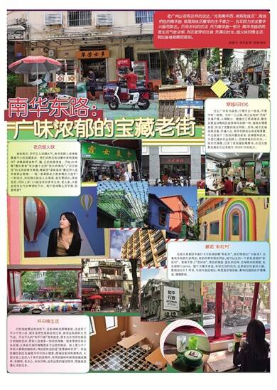 老广州以前有这样的说法:“先有南华西,再有海珠区”,海珠桥底的南华路,就是海珠区最早的主干道之一,当年因为祈求繁华兴盛而取名。历经岁月的沉淀,作为南华路一部分,南华东路依然是生活气息浓郁,在这里穿街过巷,充满旧时光、烟火味的慢生活,就如画卷般展现眼前。 饶禧/文 黄译萱/图 饶禧/模特 穿越旧时光 过去广州有句谚语:宁要河北一张床,不要河南一栋房。当时一江之隔,珠江以南的“河南”交通不便,人烟稀少。随着过江桥梁建成,最先发展起身嘅地区就係南华东路一带,海珠亦慢慢变旺,形成了完整的商业网络。后来,城市交通逐渐完善,四通八达,南华东路商业街逐渐落寞,不过就留下了饱经风霜的老街、老骑楼和老店。当我们漫步在这条路上,仿佛穿越到旧时光,一排旧式骑楼,记录了老街曾经嘅繁华,亦成为摄影发烧友们记录城市、怀旧打卡的地方。 老店烟火味 老街虽旧,但不乏人间烟火气,南华东路上原来隐藏着不少的宝藏老店。我们问附近街坊最中意呢度啲咩?讲嘅都係各种平、靓、正的街巷美食。开咗20年嘅“霞女美食”有分量十足的“劲大炸蛋饭”;“汉记面馆”的云吞面弹牙爽滑;粤菜馆“梁家菜馆”最近仲入选米其林必推榜……每一家都係本土美食嘅实力选手!一到饭点,间间铺头就会人头涌涌,甚至要排队;茶余饭后,怀旧士多门口就会有好多学生哥、老人家,大家坐低饮支汽水啤酒吹下水。呢个悠闲嘅生活节奏,你爱唔爱? 邂逅“彩虹村” 近排大家都好中意打卡五彩缤纷嘅“彩虹村”,其实唔使出广州就有!沿着南华东路行多两步,来到同草芳围交界处,就可以见到一个多彩混搭的“彩虹村”。老巷子穿上“花衬衫”,黄色的墙壁、蓝色的拉闸、红绿相间的房屋,处处都咁Colorful。搵个大晴天来逛,有阳光加持的话,这里就好似童话小镇,影相劲出片!而且,与闹市街区相比,呢度胜在够安静,最啱约埋朋友仔慢慢逛、慢慢影啦。 怀旧慢生活 行到攰就要坐低放松下,这条绿树成荫嘅老街,还进驻了不少个性小店,现在连背包客都会找过来,感受这条路的生活气息。开业不久的“和平行旅”青年旅舍,係专为女性背包客设计的独栋空间,畀到入住者多一份安全保障。旅舍里面设有公共区域,让来自五湖四海嘅朋友可以放松畅谈。街上更少不了年轻人挚爱的咖啡店,特别受欢迎的是“美景咖啡百货”。在这栋醒目的红色窗框与竹叶的小楼里,摆满店家周围搜集的、大部分是上世纪八十年代的老物件,所用的咖啡杯都係琉璃玻璃杯,有咖啡、有点心、亦有旧物,坐在这里的窗边叹啡,简直就是慢生活的范本。