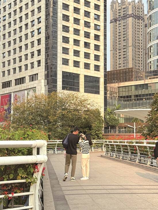 广州的马路上有唔少人行天桥,桥上行人步履匆匆,桥下车辆川流不息。你有冇试过放慢脚步,喺桥上望望远处、睇睇桥下嘅风景呢?跟住可乐君从市区天桥上欣赏下繁华的广州,还有哪些不同风情吧! 饶禧/文 黄译萱/图 科幻feel 地点:花城大道越秀金融大厦旁 这里有一条超长的天桥,当你企喺天桥中间嘅“C位”,直面广州CBD,广州图书馆、K11等代表性建筑全部展现在你面前,两边係林立嘅高楼大厦、桥边茂密的勒杜鹃花,皆成铺垫,铺垫成一条直通地标建筑群的“绿色通道”,俾你“可以一步登天”的错觉。近处的花草艳丽,远处密集的冷色建筑群,白色栏杆连接远近,对比之下,科幻大片的感觉油然而生。入夜之后,摩天大楼灯光点点,车流川流不息,赛博朋克风大片即刻get。 时代feel 地点:人民南路新亚大酒店旁 广州的长堤,有多栋西洋风格与岭南特色融合的建筑,被称为广州“小外滩”。最能体现这边建筑特色的制高点,就係新华大酒店旁、横架在人民南路的人行天桥上。天桥的两边,一边係94岁“高龄”、拥有“南华第一楼”称号的新亚大酒店,一边则是矗立于珠江边的新华大酒店,而上边则是改革开放、经济高速发展后建造的高架桥,可以说它们都是广州不同时代的繁荣见证。天桥上的栏杆,可以拍到桥上与桥下景色交相辉映,成为热门的打卡机位。新亚大酒店与车流作为背景,喺阴天同傍晚时分,用较暗嘅冷色调定格,复古电影氛围感拉满。 穿越feel 地点:五羊邨地铁站旁 一座历史悠久的城市,会留下许多不同时代的印记,位于五羊邨地铁站旁的这个天桥,就可以带你“穿越”,一次过睇到广州不同时代的样子。横跨东西南北嘅环形天桥,每一个方向都会带畀你唔同嘅感觉。桥的南北方向,能看到车水马龙的广州大道,车流川流不息;东边通往广州最繁华的CBD,摩天大楼林立;西边则通向五羊新城,这里是全国最早的商品房小区之一,住宅上都是广州的“光辉岁月”的痕迹。夕阳西下,晚霞把城市染成一片金黄,从天桥上往不同方向取景,就能拍出不同风情的广州街景,西面可以直望落日,余晖把老旧的灰墙照亮,仿佛又开通了一条时光隧道。超宽又繁忙的马路、城市空旷的视野、金色黄昏的定格,这座天桥真係影靓相嘅绝佳位置!