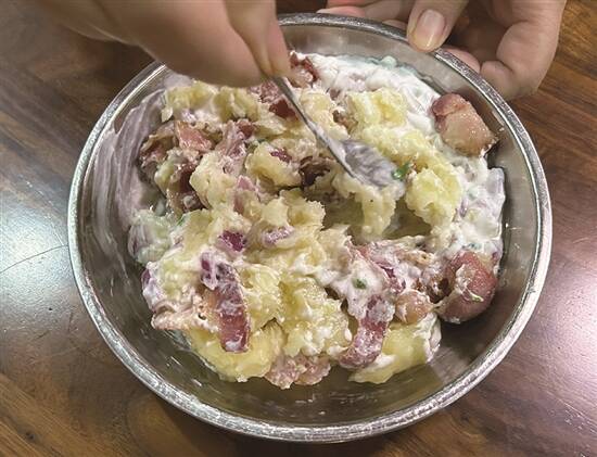 年头工作多嘢搞,忙咗一个星期冇时间行街买菜,周末又唔想出门觅食?其实,食材少少哋就可以做大餐啦!可乐君推荐嘅三种加餐美食,食材简单又易煮,应对朋友同事上门都绰绰有余! 黄译萱/文、图 白饭加奶变布丁 甜蜜周末,点可以少咗甜品?西式甜品制作起来,一般都有好多工序、花费好多时间。如果中意甜食又想keep fit,可以试下呢款做法简单又可以控制糖度的米布丁。食材劲简单,有米饭、牛奶就可以开工了,口感係令你意想唔到咁正! 【材料】牛奶250g、白米饭50g、糖 1.准备牛奶,攞出一碗白米饭,将牛奶和米饭倒入锅中。 2.开中火煮15分钟左右,等到水牛奶比正常状态浓稠,期间要注意不停搅拌以免粘底。 成品 3.睇到米粒浮出来就可以关火,如果你钟意细腻口感,可以用破壁机再搅拌下。放入冰箱冷藏1-2个钟,甜品即大功告成! 肉菜加蛋变披萨 一人食,其实係最难控制饭菜分量,如果煮多咗饭菜,又唔想浪费点办?加多一个鸡蛋,就可以变成意式烘蛋frittata啦。意式烘蛋frittata係一款经典嘅意大利菜,出锅时睇落好似披萨饼,但其实佢嘅口感同蛋饼一样。你只要把番茄、口蘑等蔬菜和培根、鸡肉等肉类炒熟,然后再加入蛋液,就可以轻松凹出居家食brunch嘅松弛感! 【材料】番茄、培根、2-3个鸡蛋、少许马苏里拉芝士、少许黑胡椒、少许盐 1.从蔬菜和肉切成粒,把鸡蛋打成蛋液,再加入盐和黑胡椒调味。 2.把蔬菜和肉放入油锅,加盐和黑胡椒炒2-3分钟。之后把蛋液倒入锅中铺平。 成品 3.如果想要口感更好,可以加入马苏里拉芝士!冚上盖用中小火烘2-3分钟,直到蛋液凝结就ok啦! 酸奶做酱拌沙律 希腊酸奶虽然吃着健康,但佢通常好大一罐,味道又淡茂茂,保质期又短,每次都好似食唔完。其实,浓稠嘅酸奶仲可以用来代替沙律酱,制作酸奶土豆沙律。酸奶会令土豆变得丝滑,再加入鸡蛋与培根丰富口感,整出来嘅沙拉好适合摆盘,唔问都以为你去咗西餐厅,畀大家足够的仪式感。 【材料】1碗希腊酸奶、1个土豆,2个鸡蛋,半个洋葱,少许柠檬汁、少许盐、少许黑胡椒、少许香葱 1.先把土豆烤熟或蒸熟;蒸好两个鸡蛋、剥壳、切小块备用;培根切小块,全程小火煎出油脂。 2.制作酸奶酱。把希腊酸奶和洋葱粒、柠檬汁、盐和黑胡椒、小葱,搅拌均匀。 成品 3.将土豆、鸡蛋、培根倒入大碗,加盐和黑胡椒,再倒入酸奶酱,搅拌均匀后装盘。如果想更美观,可以撒上葱花做装饰。