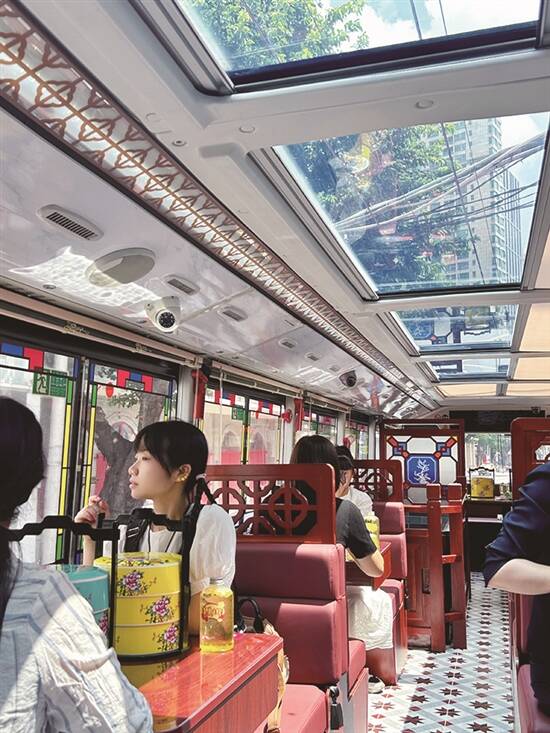 “黄金周”攻略@广州 “十一”黄金周又准备到啦!如果你未有plan出去玩,或者未谂到去边度玩,咁我哋就定个位:广州!贴心嘅可乐君搜罗咗一份新鲜好玩攻略,等大家get到至新至IN嘅好玩资讯,喺广州可以玩得舒适、食得招积。 策划:骆苹、曾敏妍 统筹:曾敏妍 执行:饶禧、黄译萱、郭玮、秦丽莹、汤唯闻、张子殷 坐巴士叹早茶 浪漫巴士Citywalk 对于广东人嚟讲,饮早茶係一种享受。最近,广州巴士集团推出咗“如约华厦,印象广州”文旅专线主题车,将早茶带上双层巴士,边品味粤式美食,边打卡广府靓景,享受双倍快乐。一于跟住可乐君嘅步伐,齐齐体验下啦! 饶禧/文 黄译萱/图 郭玮/模特 移动live show 广州巴士仲推出“音乐茶歇”主题巴士,听住动人嘅音乐,喺车水马龙嘅街道上游车河,路边嘅风景不停变换,冇乜比呢趟旅程更浪漫。拉风嘅音乐茶歇双层巴士上,摆放住复古嘅蓝色座椅同埋小型音乐舞台,每个月都会邀请本土音乐团队、音乐学院来演出,唔同嘅音乐主题同歌单轮换上演,开启一场移动嘅live show。巴士从舒适安静嘅二沙岛出发,喺蓝天白云下,将广州塔、有轨电车、CBD高楼等标志性景色尽收眼底。茶歇餐品有广州传统特色嘅鸡仔饼、豆沙,仲用广州市花木棉花来做特调,把广式风味玩到极致。想放松又想舒适嘅朋友,不妨嚟翻趟音乐茶歇巴士之旅啦,感受另一种巴士city walk! 视觉味觉齐满足 巴士启动后,工作人员会送上粤式早茶食盒。外盒上有精致嘅雕花,内里每一层都有唔同惊喜。三层食盒里面,有各种各样嘅正宗粤式点心:皮薄馅靓嘅虾饺,浓虾味充斥口腔;仲有大粒烧麦,一啖饱肚满足;同埋蜜汁老娘黑叉烧,蜜汁浓郁入口即化……带着呢啲“移动”一盅两件,食住早茶、望着窗外的靓景,体验视觉和味觉嘅双重享受。这趟文旅专线每日有两班次,分别係早上9:00至11:00和11:30至13:30,感兴趣嘅朋友可以登陆“巴士文旅”小程序了解啦。 浪漫粤式之旅 这趟独特嘅文旅专线,用最醒目嘅红色作为双层巴士主色,车身印着海珠桥、小蛮腰等羊城地标建筑。车门贴住“品广府文化、叹粤式茶点”,瞬间成为“行走的焦点”。进入车内,映入眼帘嘅係熟悉的满洲窗、古色古香的卡座,充满广府味。巴士二楼有360°全景天窗,令大家沉浸式欣赏羊城美景,随时随地影出靓相。穿梭喺广州大马路上,同西关大屋、广式骑楼肩并肩,从高处饱览滨江风景。车程全程耗时一个半钟,途经北京路、万福路、沿江等老城区经典路段。行到边讲解员就讲到边,把沿途嘅广府文化全部话你知,身临其境地体验粤式city walk啦!