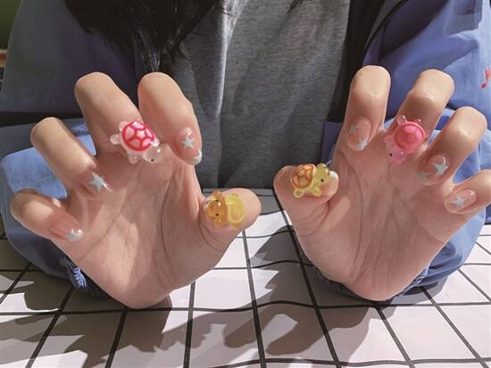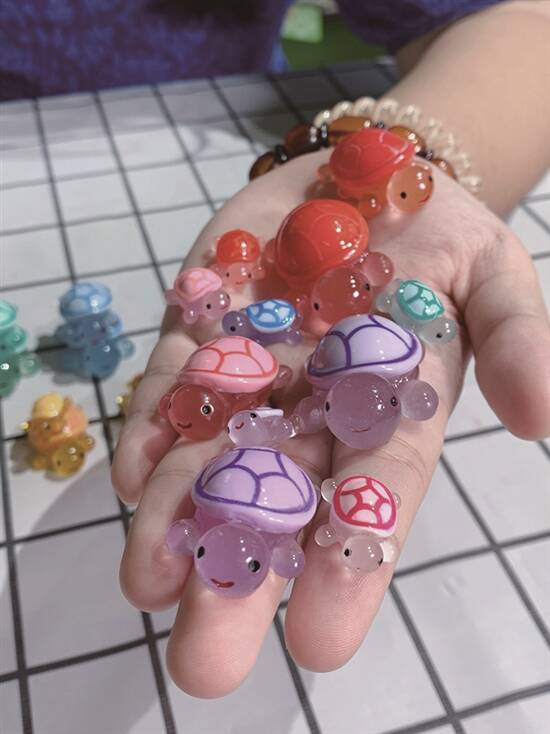 如果你係“欧气”满满嘅“乌龟大师”,成功碰翻来一堆乌龟大军,不如把龟仔排兵布阵,帮你“坐镇”重要位置。喺揾钱之地——工位,变身乌龟摆件,用柔和嘅颜色治愈疲惫嘅你; “看守”你嘅粮仓——冰箱,小乌龟冰箱贴陪你日日丰衣足食;你嘅全副身家——手机,梗係带返个“乌龟壳”先够硬净! 黄译萱/文 黄译萱、汤唯闻/拍摄 汤唯闻/模特 老友“龟龟” 经过简单改造,五颜六色嘅乌龟可以变成得意嘅小玩具来治愈你。佢哋可以整成钥匙扣,陪你打卡各处美景;可以整成捏捏球,陪你学习、工作,舒缓压力;可以整成风铃,用丝丝白噪音抚慰你的心灵。 乌龟钥匙扣:准备透明封口袋,倒入亮珠或闪片配饰打造一个粉色海洋,再把乌龟放入封口袋嘅“海洋“中,最后装上挂链,一个粉色小龟摇摇乐钥匙扣就完成了。 乌龟风铃:最方便嘅方法就係买一个风铃材料包,喺玻璃球上画出“星辰大海”,再让龟仔“爬上”玻璃球,最后挂上写咗标语或祝福小纸条。风吹过,叮铃铃嘅声音悦耳动听。 乌龟捏捏球:当“解压神器”捏捏球遇上树脂小乌龟,拧一下乌龟就会四处游动发出碰撞声,绝对係“声控必备”。喺TPR空皮球中加入史莱姆、小配饰和小乌龟,再用针管抽出气体就可以开拧啦! 盏“龟”上身 美妆穿搭界开始发力,戴上“龟甲”,龟计“上头”,龟仔“出洞”,把水灵灵的小乌龟着上身,做最chok的有“龟”一族。 乌龟头箍:如果手上仲有多余嘅头箍、发夹,不如让小乌龟“趴”上去,变成五颜六色嘅缤纷发饰。识发夜光嘅龟仔到咗夜晚,更会瞬间令你成为人群中的亮点。 乌龟鞋花:准备鞋扣、胶水和小乌龟,简单组装后变身可爱的鞋花,帮广东省“省鞋”之一嘅洞洞鞋“装修”成夏日海洋风。搭配水波纹粒、海星等造型,或者闪炩炩嘅鞋花,就更加有海滩的氛围感。 乌龟美甲:用bling bling嘅指甲油打底,再用美甲凝胶把小乌龟黐上美甲片,就可以得到得意嘅美甲。用mini版乌龟整出来嘅美甲,更精致、更方便。 大摆龟阵 奥运健儿全红婵备受大家宠爱,出埠一趟满载而“龟”,凭借一己之力带火“乌龟对对碰”,让无数打工人“沉迷”彩色乌龟。呢款网红小游戏集盲盒、消消乐、连连看三样为一体,拥有各size“祖孙四代”,既可以提供情绪价值,又令大家感受到盲盒嘅刺激。一堆小乌龟仲可以点样治愈你?快啲跟住可乐君快乐“二创”啦! 乌龟手机壳:乌龟有大有细,如果係足够大嘅乌龟,可以贴上手机支架,帮你揸实手机不易甩;细乌龟更容易摆阵,用滴胶粘在手机壳上,摆成你钟意嘅“阵法”,举起手机时你就係最抢眼嘅仔。 乌龟摆件:揾一个透明嘅盒或相框,抓一把乌龟仔放入去整成乌龟叠叠乐。一次过放入一堆龟龟,既可以节省空间,每次转动龟仔又会叠出唔一样画面,睇落仲好有成就感。 乌龟冰箱贴:只要喺每个乌龟的背后黐一块磁铁,你就可以喺冰箱上面排兵布阵了。想要咩形状就靠大家发挥想象力。夜晚就算唔开灯,都可以跟住夜光龟龟轻松揾到冰箱啦!
