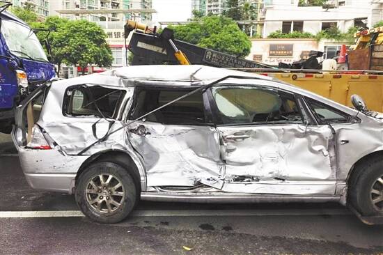被撞车辆车体变形。 ▲