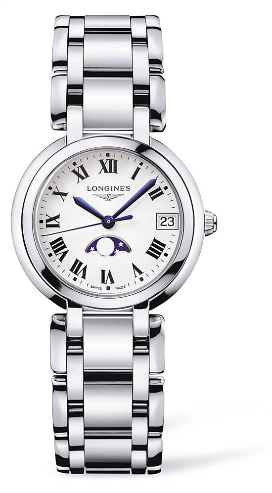 银色表盘上饰以漆绘罗马数字,与蓝钢指针相得益彰,精致小巧的表壳内加入月相显示,融合柔美风格与精纯工艺,整体风格明亮又独立,胜任各种造型。
