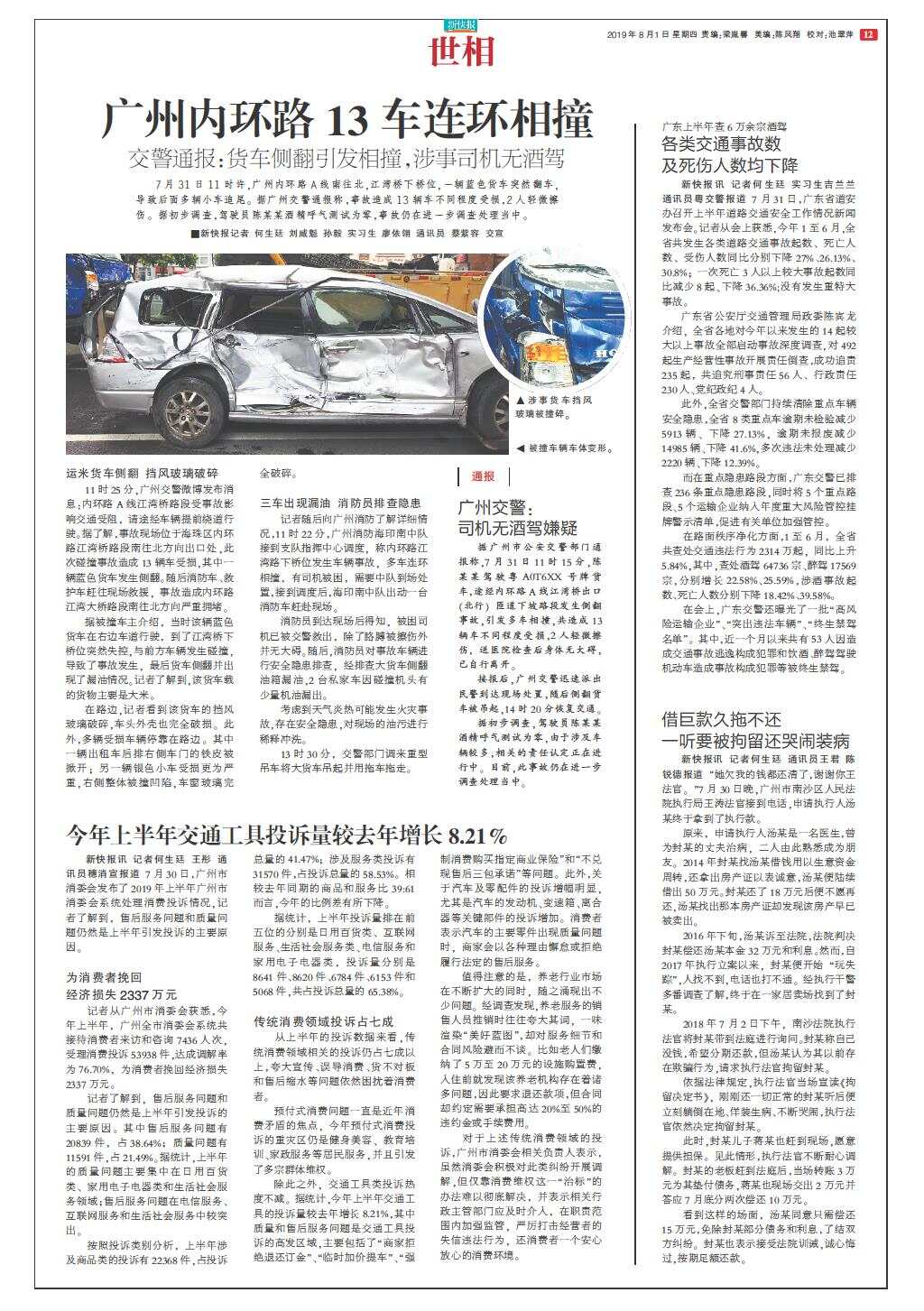 今年上半年交通工具投诉量较去年增长8.21%