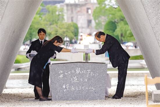 松井一实在纪念活动上发表和平宣言,强调为了更好地体现日本宪法中的和平主义,代表广岛市民请求日本政府在《禁止核武器条约》上签字并批准该条约。