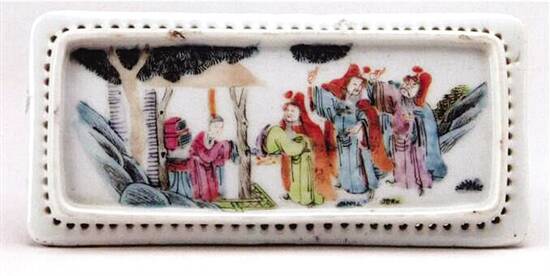 清·道光至同治 粉彩人物故事纹瓷板 (现藏于四川省文物考古研究院。根据湖北省博物馆编:《千古英雄:“大三国志展”归国汇报展》,湖北人民出版社,2009年版,第162页)