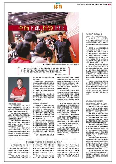 就在2019-2020赛季CBA联赛开战的前夜,中国篮协发布重磅消息:男篮主帅李楠下课,广东队主帅杜锋接任并带队备战明年的奥运会落选赛。今年9月兵败世界杯后,关于主帅李楠去留的问题,终于有了答案。■新快报记者 高京