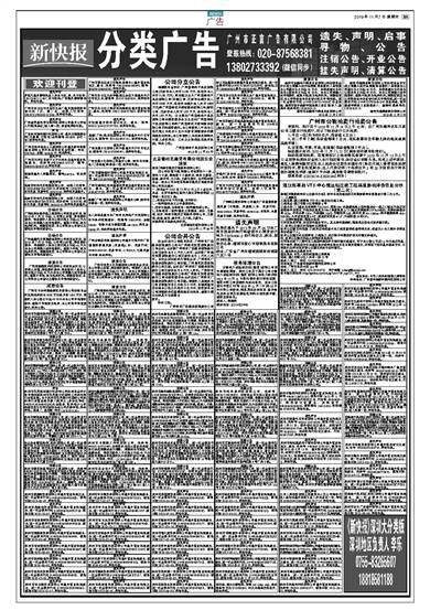 《新快报》深圳大分类版 深圳地区负责人 李乐 0755-83265607 18818581188
