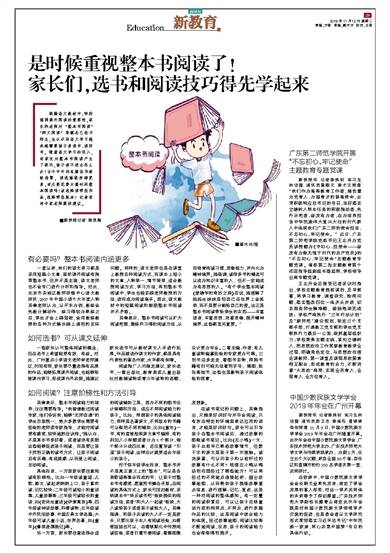 统编语文教材中,特别强调课外阅读的重要性,家长和老师对“整本书阅读”“群文阅读”等概念已经不陌生,也认识到语文学习越来越需要孩子多读书、读好书。随着语文学习的深入,有家长对整本书阅读产生了疑问,孩子读不进去怎么办?古今中外的名篇佳作卷帙浩繁,读选篇能涉猎更多,有必要花费大量时间整本阅读吗?该选择读哪些作品,选择哪些版本?记者咨询专家老师提供建议。■新快报记者 陈思陶