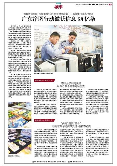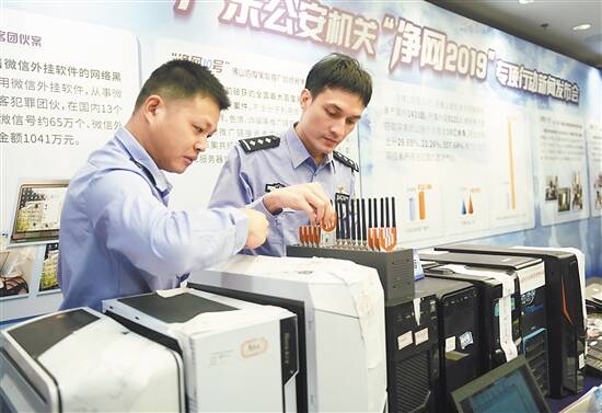据了解,自“净网2019”专项行动开展以来,全省公安机关以“追源头、断链条、净生态”的原则,以打击整治黑灰产业犯罪为重点,破获了一批网络黑产犯罪案,其中,广州警方破获的微信外挂特大黑客团伙案是目前全国最大制售微信外挂软件的网络黑产案件;佛山警方破获的百度黑帽推广网络赌博案是目前全国最大百度黑帽推广网络赌博产业链的网络黑产案件;中山警方破获的网络域名劫持黑灰产业链专案是目前全国最大域名劫持犯罪的网络黑产案件。