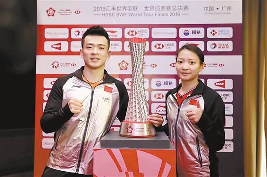■中国羽毛球队混双选手郑思维(左)和黄雅琼出席了昨日的抽签仪式。 图/穗体宣