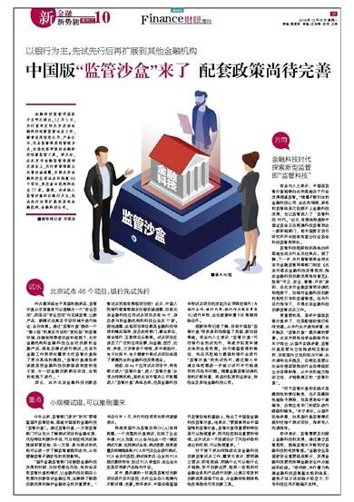 今年以来,监管部门多次“放风”要借鉴国外监管经验,落地中国版的金融科技“监管沙盒”。通过监管沙盒,一方面监管部门可以充分了解测试项目的金融本质、风险特征和操作手法,可为制定相关政策措施积累经验;另一方面,参与测试的机构可以进一步了解监管意图和走向,从而缓解监管不确定性的负面影响。