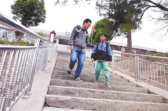 ■黎国强和扶贫队十分重视桂村的教育问题,他们多方引进社会资源,改善桂村小学的软件和硬件。桂村小学面对马路,在扶贫队的努力下,爱心企业捐建了栏杆扶手,孩子们更安全了。
