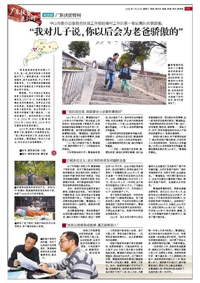 “他是组织派来桂村的第三个队长,他一来,桂村的扶贫工作局面就打开了。”新快报记者一行见到黎国强时,封开县委常委、中山市审计局副局长、中山市精准扶贫精准脱贫驻封开县德庆县工作组组长冯欣荣这样介绍他。黎国强,中山市委办公室联合扶贫工作组驻桂村工作队第一书记兼队长,2017年11月来到肇庆市德庆县凤村镇桂村。他带头在示范田里劳动;他建起了肇庆市德庆县的首个扶贫车间;他主导的第二个扶贫车间辐射了整个德庆县……在他的推动下,桂村的贫困户人均收入从2016年3180元提高到2019年13000多元,2019年正式摘除省定贫困村帽子。