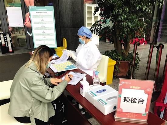 3月18日下午3时许,记者在广州海峡看到,医院预检台设于门内右手边,有两位预检员,一位主要负责量体温和表格填写,另一位则负责让来访者使用医用免洗消毒凝胶洗手,以及在鞋底喷上酒精消毒。每一位进门的来访者,都会被问及来访目的。“前天才有个陪朋友复诊的女孩,因为不肯登记资料,我们只能给她一张凳子坐在门外。她也很坚持,就在门外等了朋友1个多小时。”