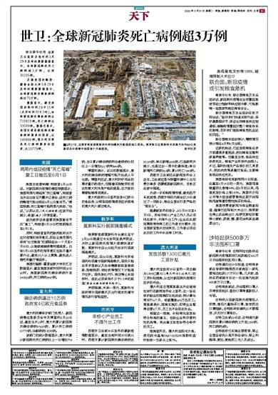 综合新华社电 世界卫生组织当地时间3月29日发布的最新数据显示,全球新冠肺炎死亡病例超3万例,达到30105例。另据美国约翰斯·霍普金斯大学3月29日发布的最新数据显示,全球新冠肺炎确诊病例超过70万例。
