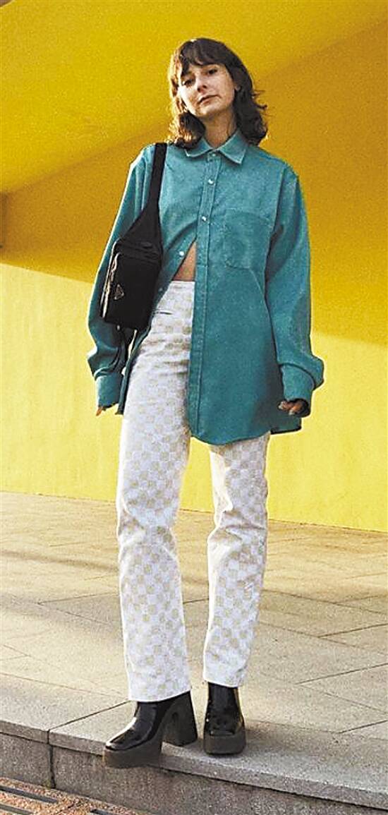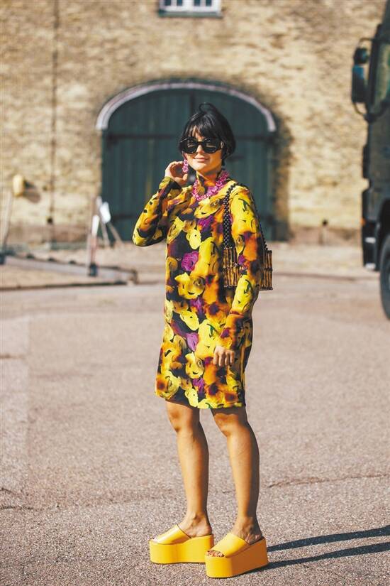 要想把厚底鞋穿得显高又显瘦,并不以原本身高做准,主要看整体造型的和谐度。