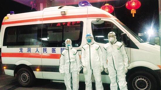 2月12日上午10时39分龙洞人民医院接到紧急电话,需要去龙洞牌坊排查一例来自湖北荆州的发热人员。樊俊鸣副院长带领防控成员快速赶到现场,由于不清楚这名疑似新冠肺炎病人的情况,存在一定的风险性,但是樊俊鸣以大无畏的勇气走上前了解该人员的情况,随后再将他移送至天河区中医院。从接到通知电话到到达现场接诊不超过十分钟,龙洞人民医院疫情防控小组医护人员反应迅速,紧急出动完成任务,充分展现了该院应对阻击疫情处理突发事件的能力!
