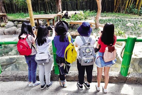 ■4月30日,“熊猫粉”们在长隆野生动物世界拍摄大熊猫。广州团队游业务重启,首批广州本地游旅行团今日正式出发。 新华社发