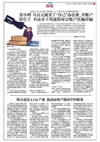 有业内人士告诉记者在全球显示行业,中、日、韩三国一直是中坚力量,韩国厂商加速退出大尺寸LCD业务,全球液晶面板产能将进一步向中国大陆地区集聚。