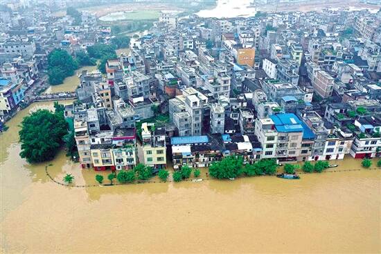 ■6月8日,因受到贺江上游(广西)强降雨及合面狮水库泄洪影响,封开县南丰镇贺江水位持续上涨。镇上水势低洼的南丰河堤路和中心市场一带受淹。新快报记者 宁彪 通讯员 封开宣/摄