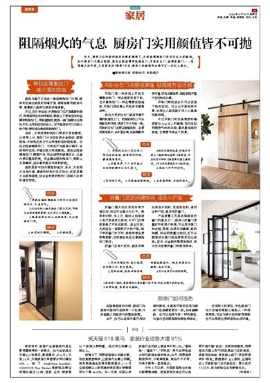 往日,厨房门在传统样板间的重度熏陶下,木质玻璃推拉门深深印在大家脑海。如今厨房门已跳出框框,黑色边框玻璃单轨推拉门、吊柜谷仓门、玻璃折叠门……阻隔烟火的气息,已有更多的“演绎”方式,厨房门的颜值和功能可以一并打上满分。■新快报记者 何璐诗/文 资料图片