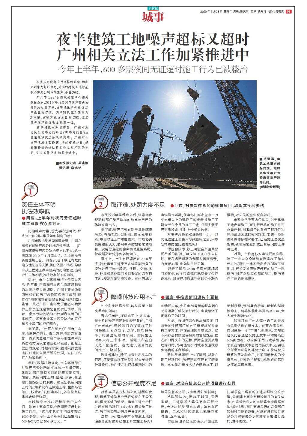 夜半建筑工地噪声超标又超时 广州相关立法工作加紧推进中
