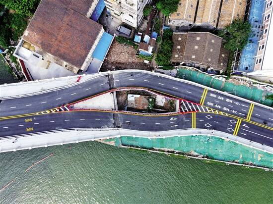 在确保海傍外街22号房源安全情况下,桥梁建设绕开该处征拆节点,并在桥下为该住户保留出入通道,实现桥梁正常开通。今后相关部门将与该业主保持沟通协商,争取早日达成共识。