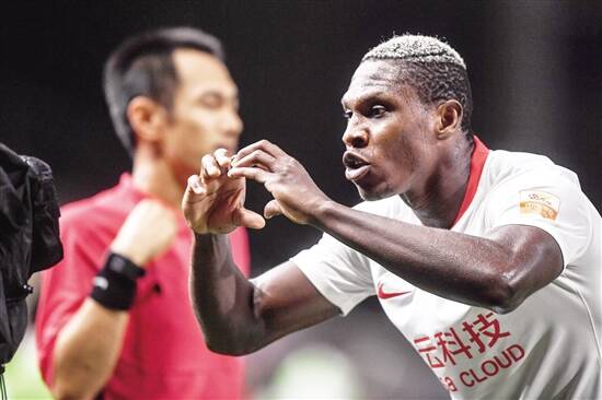 ■深圳佳兆业队球员马里进球后庆祝。新华社发